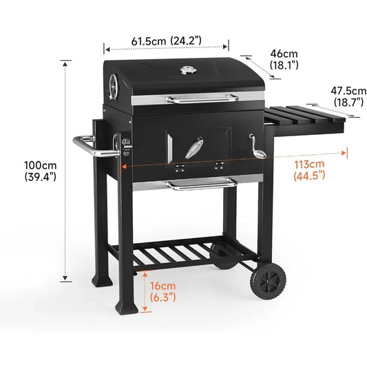 Portable Charcoal Grill with Wheels & Folding Table | Built-in Thermometer, Adjustable Charcoal Tray, BBQ Smoker for Outdoor Cooking, Garden, Camping & Parties | Buy Online at Amizek