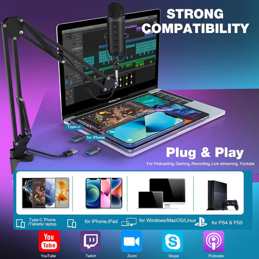 ZealSound K66 USB Microphone Set with Boom Arm - Professional Podcast Gaming Streaming Mic for UK Content Creators